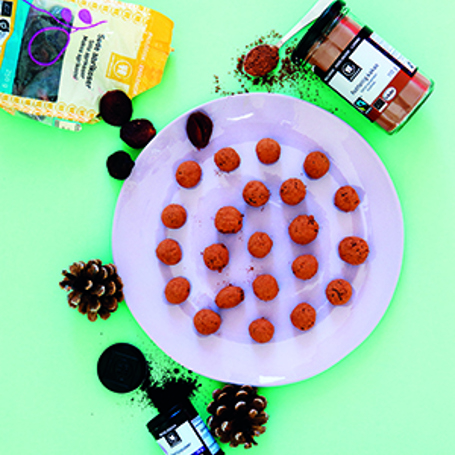 Ätbara stjärnfall är visst den bästa beteckningen. Ät dem innan julafton och få "smakklappar" i förväg. MÄNGD: Tillräckligt för att 7-8 personer kan kalasa i flera timmar. TILLAGNINGSTID: 15-20 min. HÅLLBARHET: Upp till 3 veckor i kylen, men så lång tid kan man inte hålla sig i skinnet! KÖKSTIPS: Du kan också ha i andra nötter: Osaltade jordnötter, macadamia- eller pekannötter. Använd citronsaft och skal i stället för apelsin. Sist men inte minst kan kakaon ersättas med johannesbröd. Du kan också rulla konfektkulorna i kokosmjöl eller nötmjöl. Och har du tillgång till osaltade pistagenötter så prova med en smula av dem i massan.